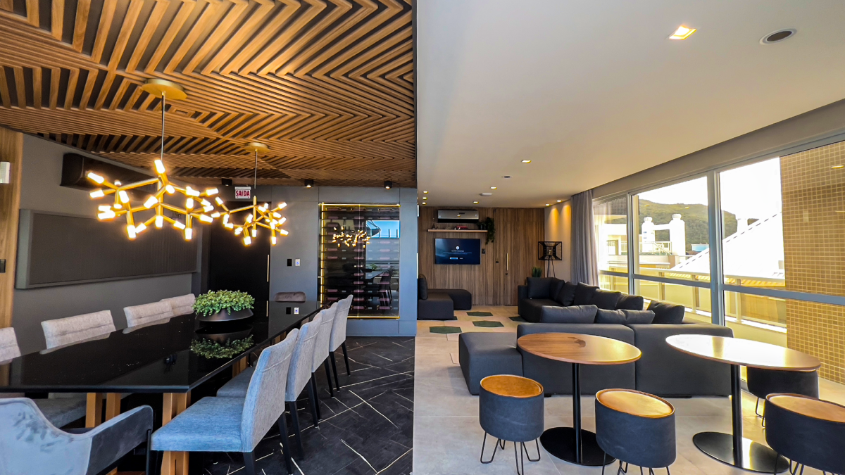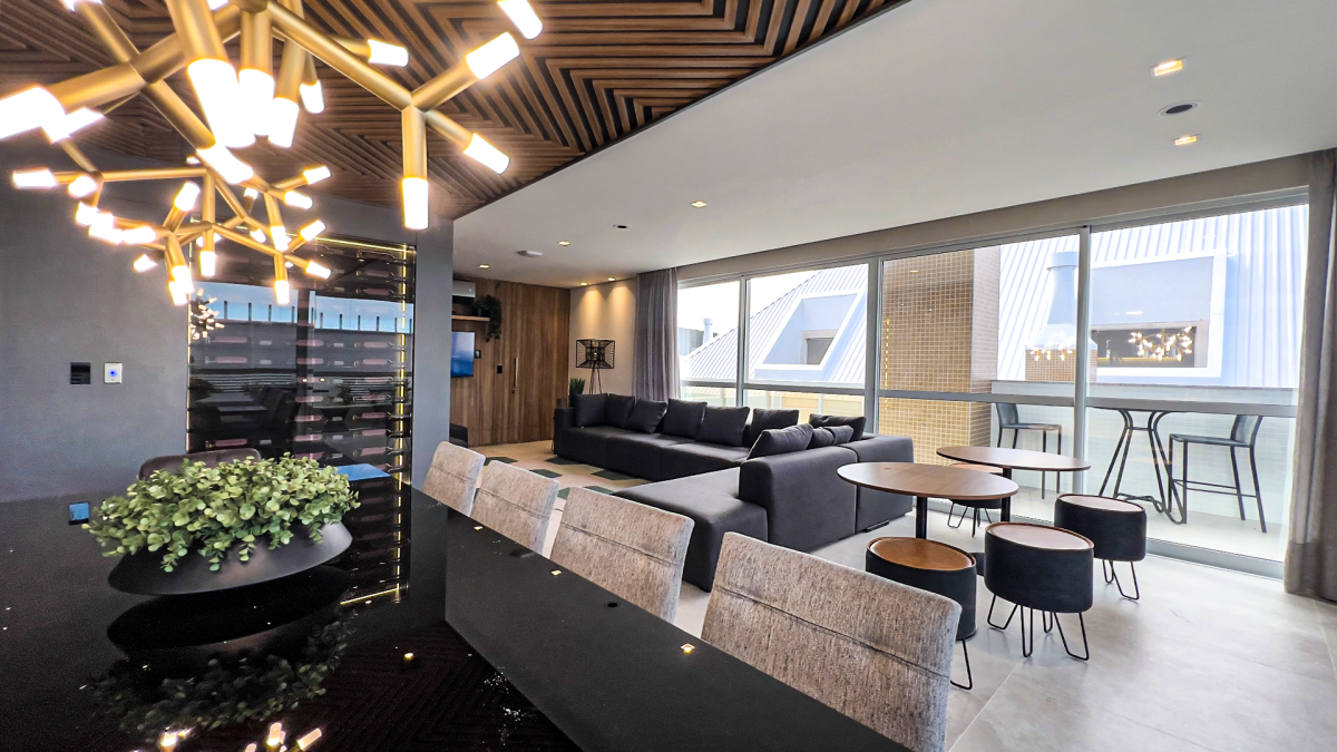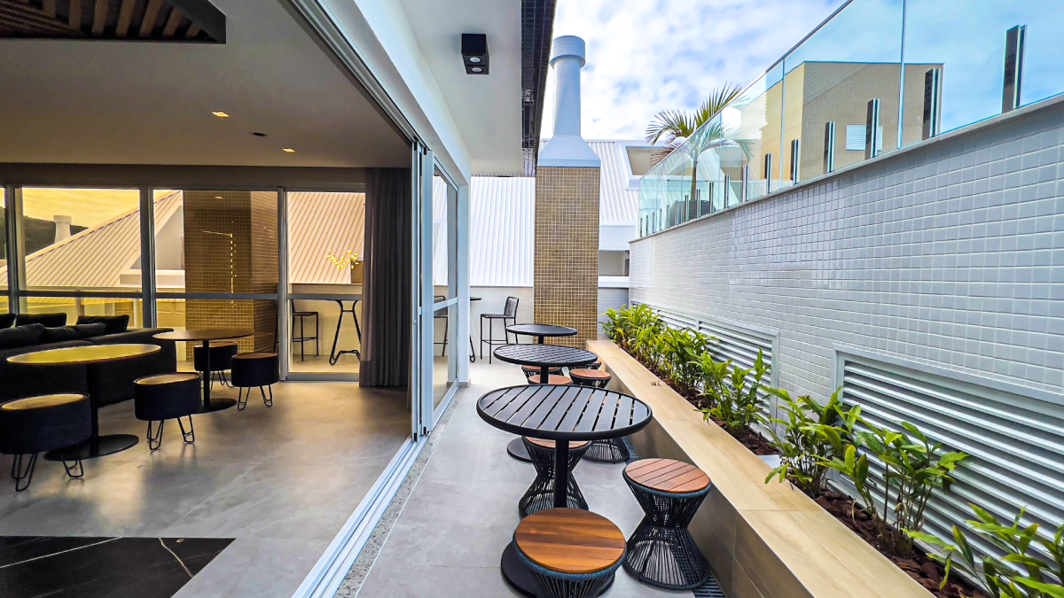 Para momentos de lazer, a churrasqueira a carvão é perfeita para reunir amigos e familiares. O destaque fica por conta do jardim privativo com grama natural, que proporciona um espaço verde exclusivo, ideal para relaxar e aproveitar a natureza no conforto de casa.
